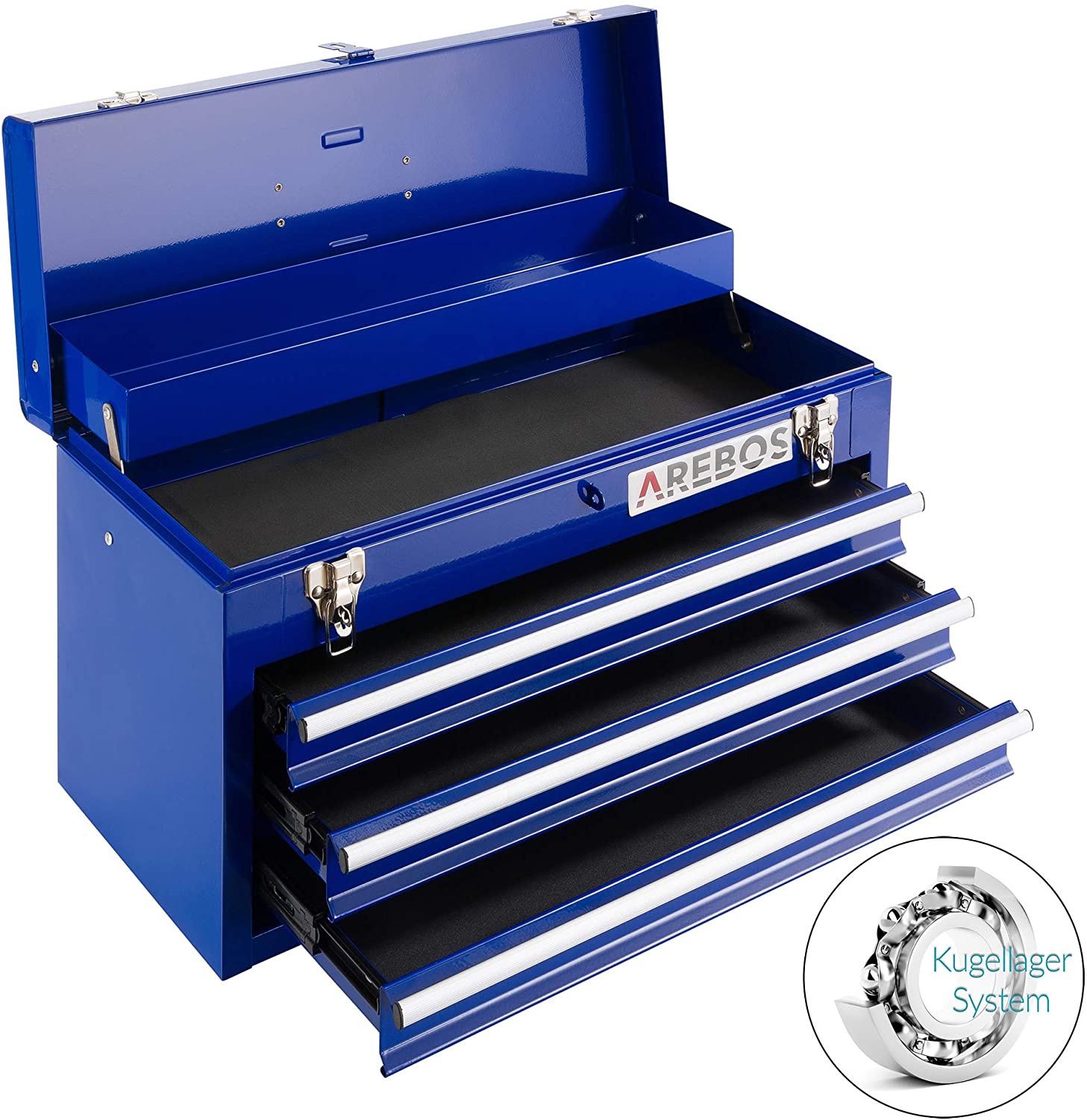 Descrizione prodotto Cassetta con 3 cassetti e 2 vani portaoggetti Volete ordine nel vostro laboratorio? Allora le valigette portautensili sono esattamente la cosa giusta per voi! Sono l'aggiunta perfetta per ogni attività artigianale, per ogni officina automobilistica e anche per la vostra officina per hobby.Potete ordinare i vostri utensili in modo ottimale nei cassetti estraibili. Hanno una funzione di bloccaggio in modo che non si aprano da soli. I tappetini antiscivolo assicurano che gli strumenti rimangano al loro posto. Con due serrature a scatto integrate e lucchetti supplementari, la valigetta degli attrezzi può essere bloccata in modo sicuro.I vantaggi a colpo d'occhio: Valigetta portautensili con 3 cassetti con cuscinetti a sfera e scomparti ripiegabili.Cassetti con tappetini antiscivoloLa funzione di blocco impedisce l'apertura involontaria dei cassettiChiudibile con 2 chiusure a scatto e lucchetti supplementari Cassetti con cuscinetti a sferaI cassetti con cuscinetti a sfera garantiscono un'apertura dei vani senza problemi.Funzione di bloccaggio per un trasporto sicuroLa funzione di bloccaggio impedisce l'apertura involontaria dei cassettiSchizzo dimensionato 3x Cassettiera a cassetti: 45 x 19 x 4 cm1x scomparto incernierato: 50 x 20,5 x 6 cmTotale cassetta degli attrezzi: 52 x 22 x 30,5 cm Dati tecnici:3 cassetti Cassetta45 x 19 x 4 cm1x vano a cerniera50 x 20,5 x 6 cmCassetta degli attrezzi totale52 x 22 x 30,5 cmSuperficieResistente ai graffi, verniciata a polvereScomparticon tappetini antiscivoloColoreBlu o rosso Peso8,2 kg Volume di consegna1x cassetta degli attrezzi, 1x manuale