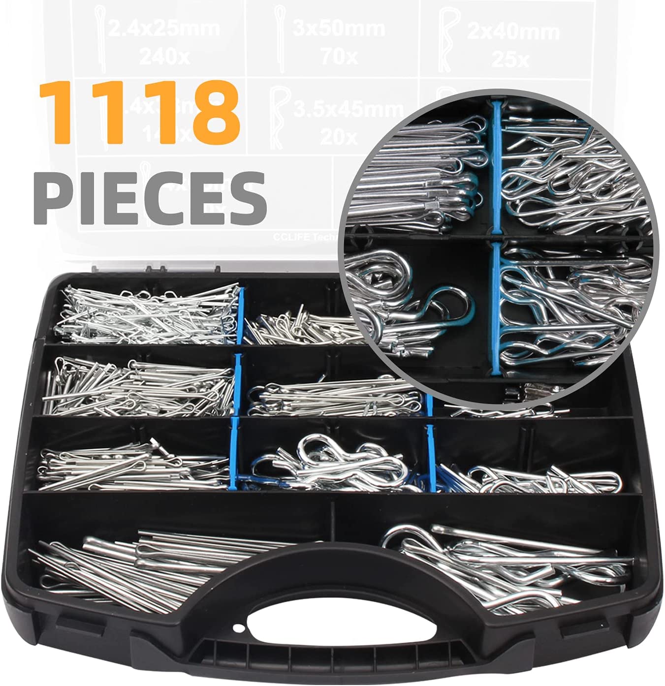 Coppiglia in accciaio perno r zincato di 12 diverse dimensioni coppiglie a molla con scatola di immagazzinaggio per riparare auto, macchinari 1118pcs