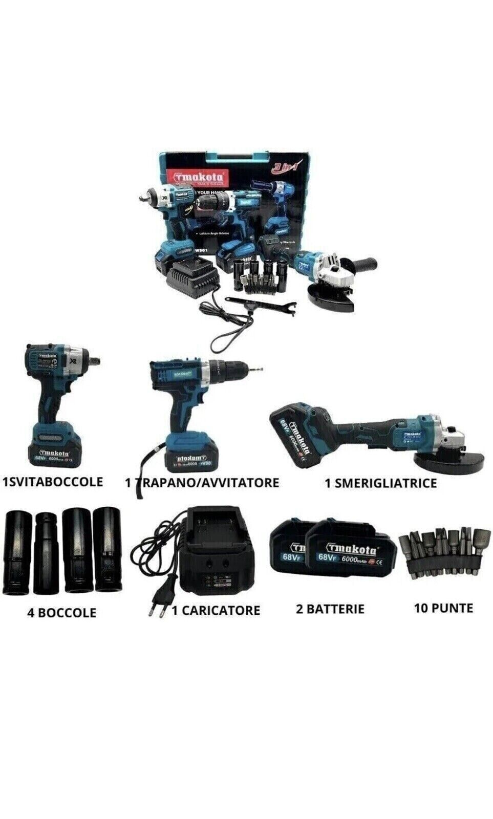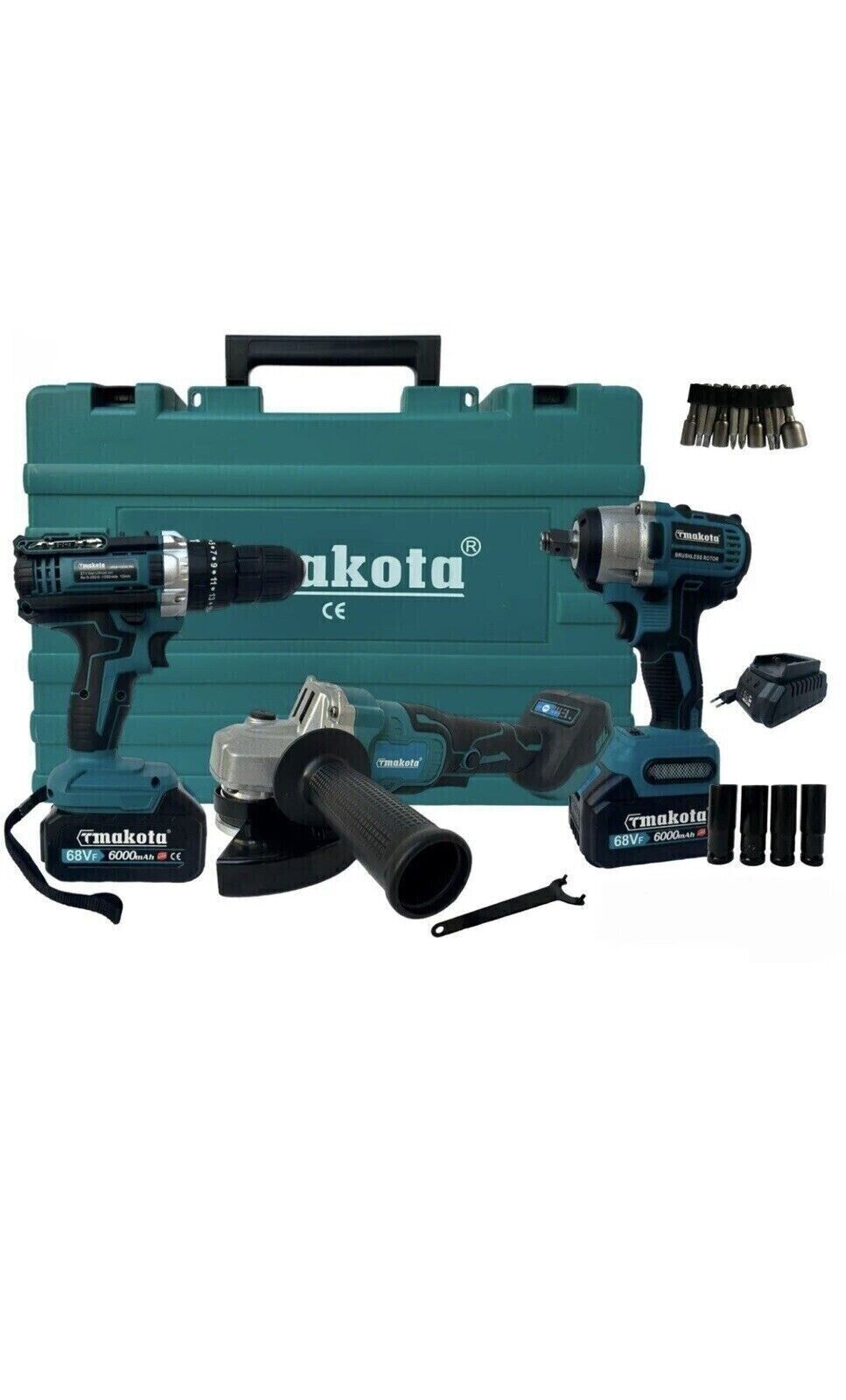 Flex / Smerigliatrice + Avvitatore Pneumatico a Impulsi + Trapano Avvitatore a Percussione Kit 3 in 1 a Doppia Batteria 68V