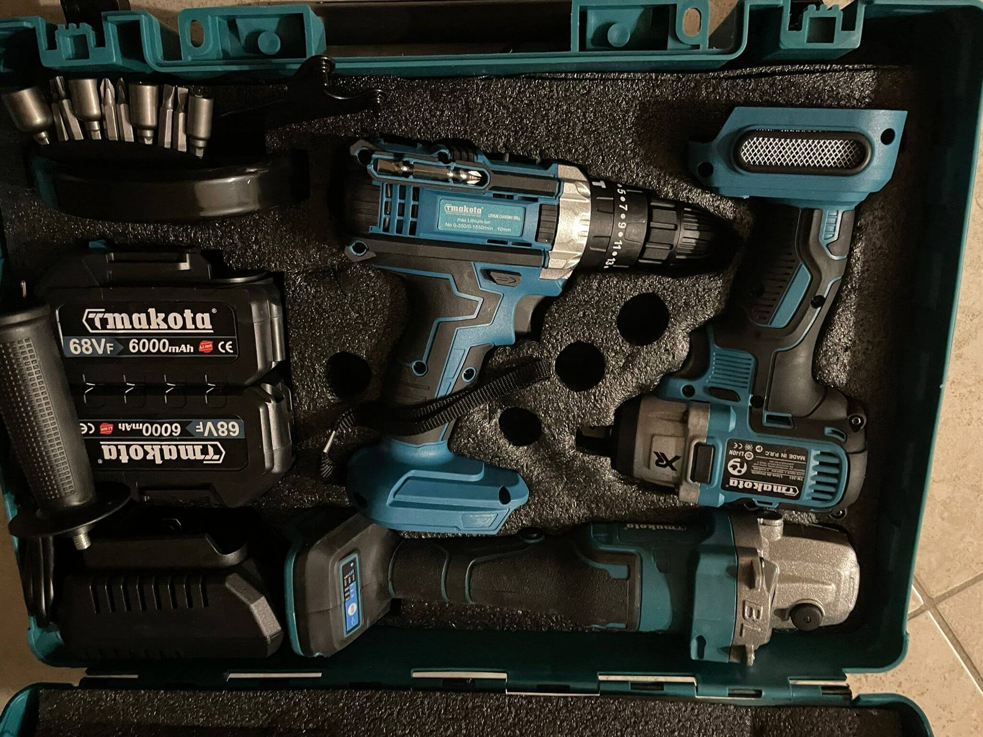 Il kit include ben 3 utensili professionali: Trapano avvitatore a percussione, Flex/smerigliatrice, e Avvitatore pneumatico a impulsi, consentendoti di avere tutto ciò che ti serve sempre a disposizione per il fai da te.