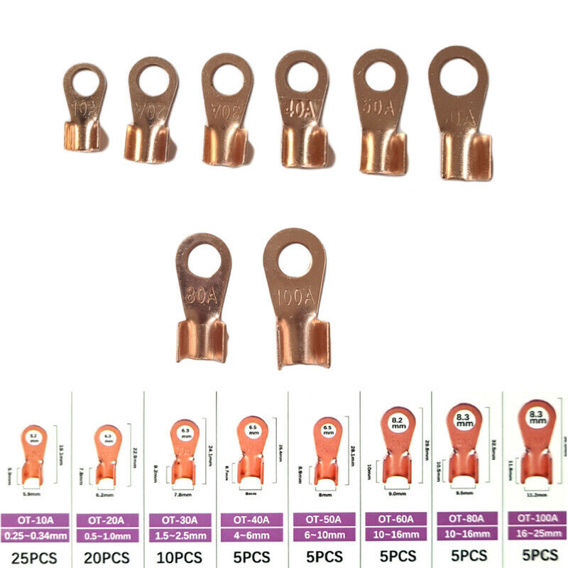Kit 80 pz capicorda connettori terminali in rame ad anello crimpare box