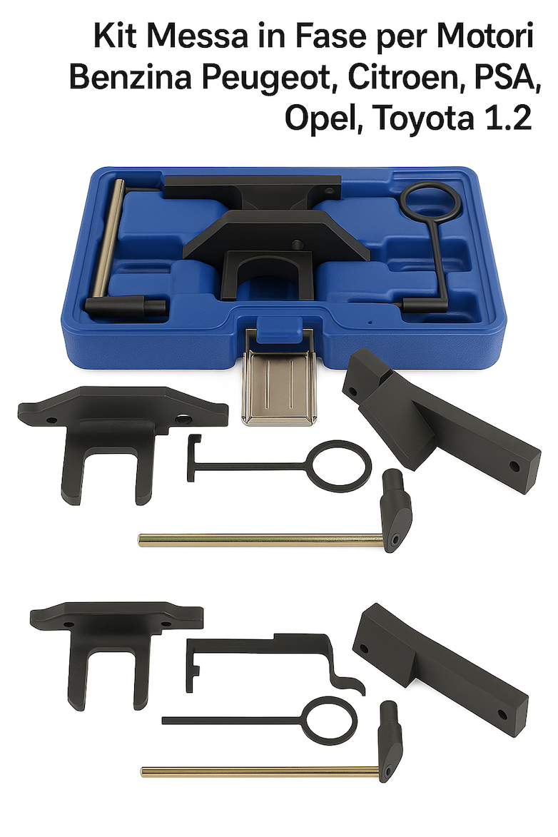 Kit messa in fase per Motori Peugeot Citroen PSA Opel Toyota 1.2. Il kit di strumenti per cambiare la cinghia di distribuzione offre una soluzione efficiente e conveniente per la manutenzione del veicolo. Grazie a questo kit, è possibile sostituire la cinghia di distribuzione senza dover smontare molte componenti, semplificando notevolmente il processo di manutenzione. Inoltre, il kit consente di controllare facilmente le condizioni della cinghia di distribuzione, consentendo di determinare se è necessario sostituirla senza dover smontare l'intero motore. Questo offre un risparmio di tempo e fatica, garantendo al contempo una manutenzione accurata e tempestiva del veicolo.