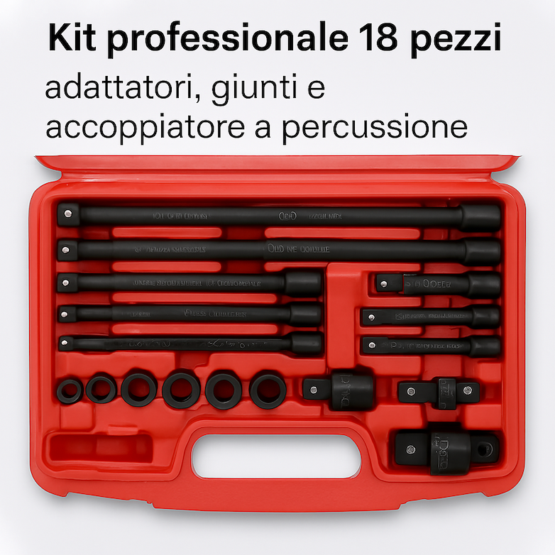 Kit professionale da 18 pezzi: adattatori per prese, giunti e accoppiatore a percussione