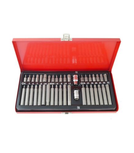 Kit Professionale di Inserti e Chiavi – 40 Pezzi di Alta Qualità per Massima Precisione!Eleva il tuo lavoro con questo set completo di inserti e chiavi Torx HEX, perfetto per professionisti, officine e appassionati del fai da te.✔ Materiali Premium: inserti realizzati in acciaio cromo vanadio per una resistenza superiore e una lunga durata. ✔ Ampia Compatibilità: kit con attacco esagonale da 10 mm e due adattatori a bussola da 1/2" e 3/8", per un utilizzo versatile. ✔ Confezione Robusta: elegante cassetta in metallo con portainserti, ideale per mantenere l'ordine e la sicurezza degli utensili.Contenuto del Kit🔹 Inserti Esagonali • 7 pezzi lunghi 30 mm: 4-5-6-7-8-10-12 mm • 7 pezzi lunghi 75 mm: 4-5-6-7-8-10-12 mm🔹 Inserti Torx • 7 pezzi lunghi 30 mm: T20-T25-T30-T40-T45-T50-T55 • 7 pezzi lunghi 75 mm: T20-T25-T30-T40-T45-T50-T55🔹 Inserti Spline/XZN • 5 pezzi lunghi 30 mm: 5-6-8-10-12 mm • 5 pezzi lunghi 75 mm: 5-6-8-10-12 mm🔹 Adattatori per Cricchetto • 2 adattatori: 1/2" e 3/8"💪 Affidabilità, durata e precisione in un unico kit! Perfetto per affrontare qualsiasi sfida meccanica con sicurezza.