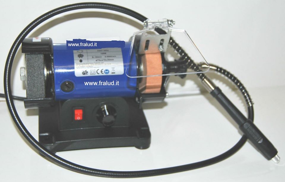 Moka da banco con spazzola e prolunga flessibileMola da banco dalle dimensioni estremamente compatte datata di :Mola a pietra20X75mmSpazzola in fibra 20X75mmPresa di forza laterale per avvitare la prolungaFlessibile (lunghezza 100 Cm) per l'agganciodi frese varie (tipo drimel) con gambo da 3mm.datata inoltre di variatore di velocitàCaratteristiche :Alimentazione V: 230 - Hz: 50/60Assorbimento max 120WVelocita' di rotazione 0-10000/min.DIMENSIONI CM 19 X 26 X 15H N.B. Foto indicativa del prodotto