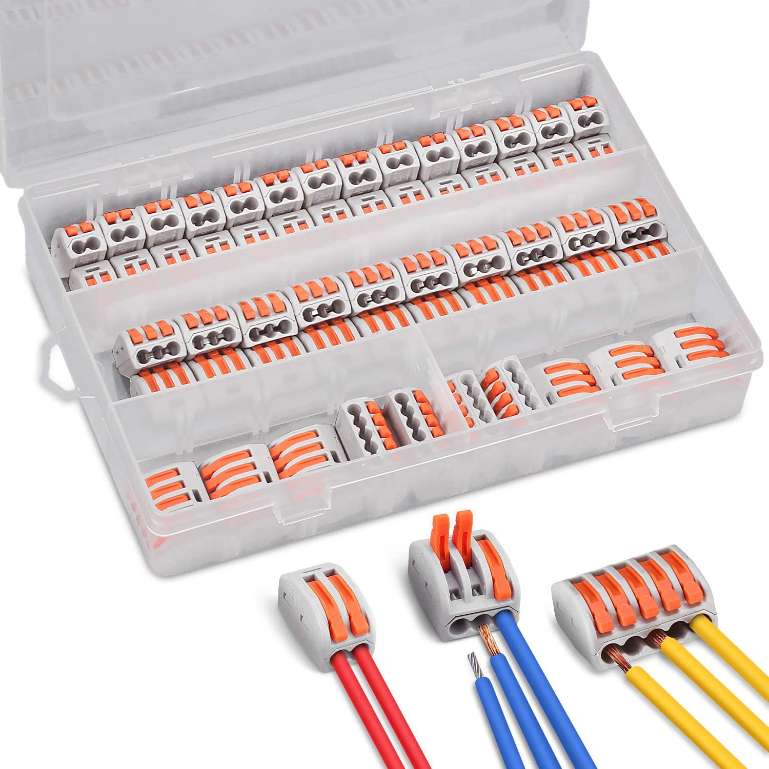 Morsetti rapidi elettric 60 pcs, plug-in a 2/3/5 porte elettrici per filo solido, incagliato e flessibile.