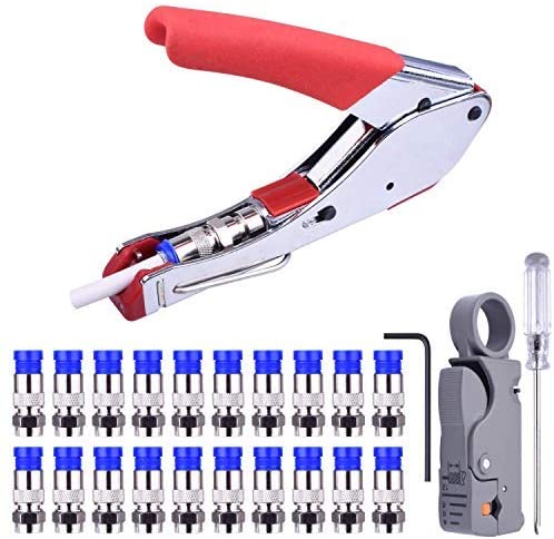 Pinza spelafili di cavo, rg59 rg6 crimpatrice cavo coassiale stripper filo coassiale e 20 pezzi f connettoi per tv via cavo audio video - nc41