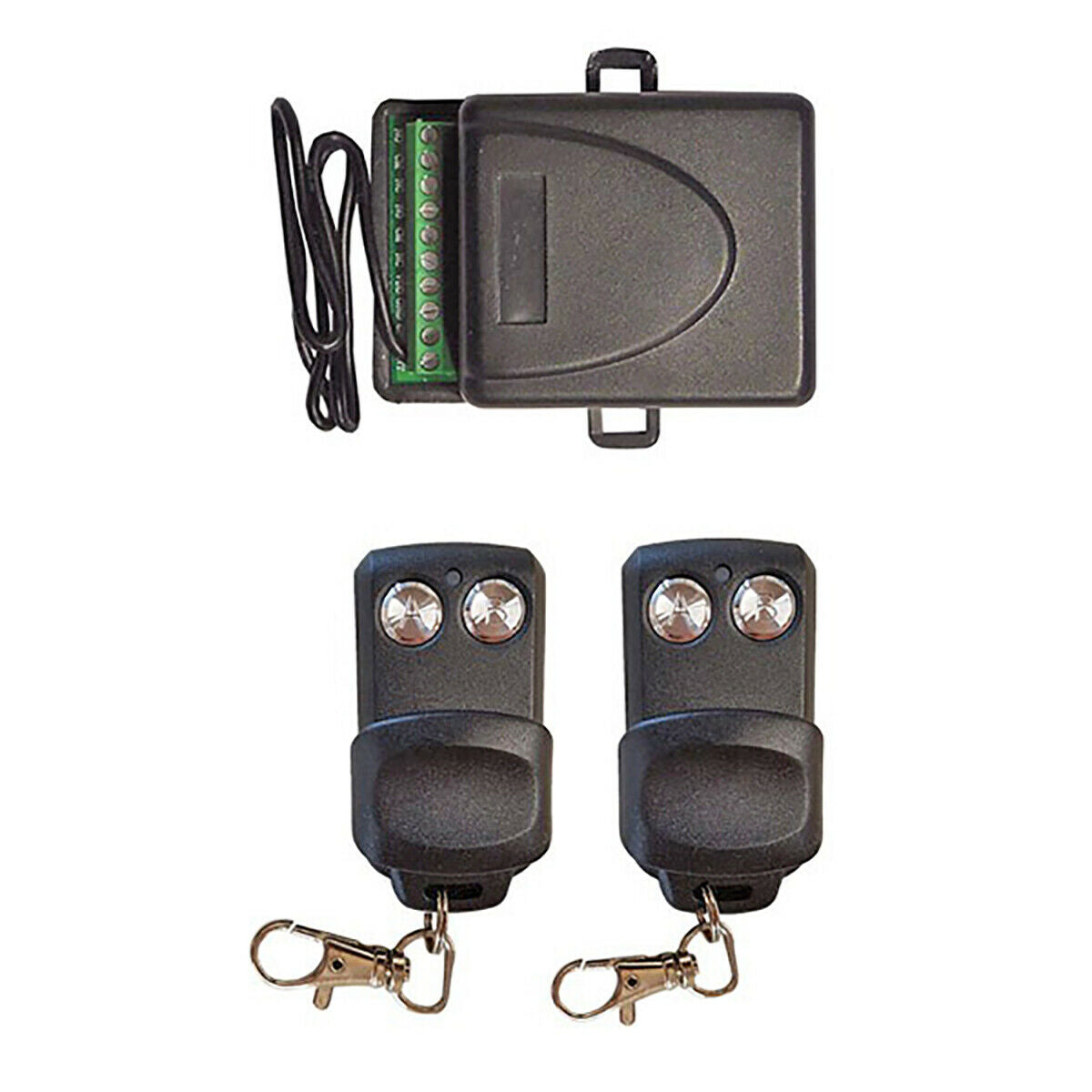 RICEVITORE DA INTERNO RADIOCOMANDI APRI CANCELLO PORTA 2 RADIOCOMANDI 433 MHZKit radiocomandi da interno a due canali operante sulla banda dei 433 MHz indicato per automatizzare cancelli, impianti di irrigazione e di illuminazione. Dispone di due canali configurabili separatamente, sia in modalità monostabile che in modalità bistabile. Massima compatibilità con tutte le marche con frequenza pari a 433,92 MHz. Viene fornito completo di due radiocomandi a codice fisso con programmazione ad auto-apprendimento.