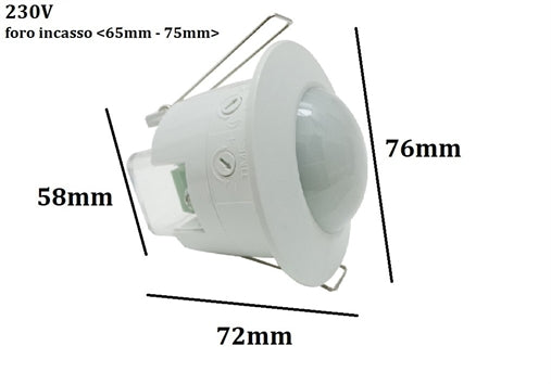 Sensore di movimento con crepuscolare rivelatore di presenza a 360° ad incasso
