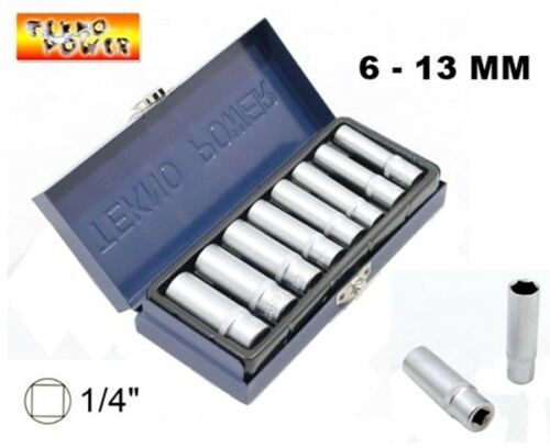 Set di chiavi bussola lunghe da 1/4 chrome vanadiu, 5 - 13 mm 8 pezzi candelette