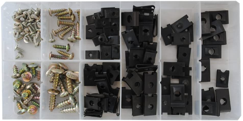 Materiale viti autofilettanti ottoneViti autofilettanti con testa a croceMateriale lamiera dadi in lamiera d' acciaio85 dadi per lamiera85 pezzi viti autofilettantiDescrizione prodottoDettaglio di prodotto:- Dimensioni delle viti40 pezzi 3 x 8 mm20 pezzi 4 x 16 mm15 pezzi 5 x 12 mm10 pezzi 6 x 20 mm- 85 morsetto parafango / dadi corpo in diversi