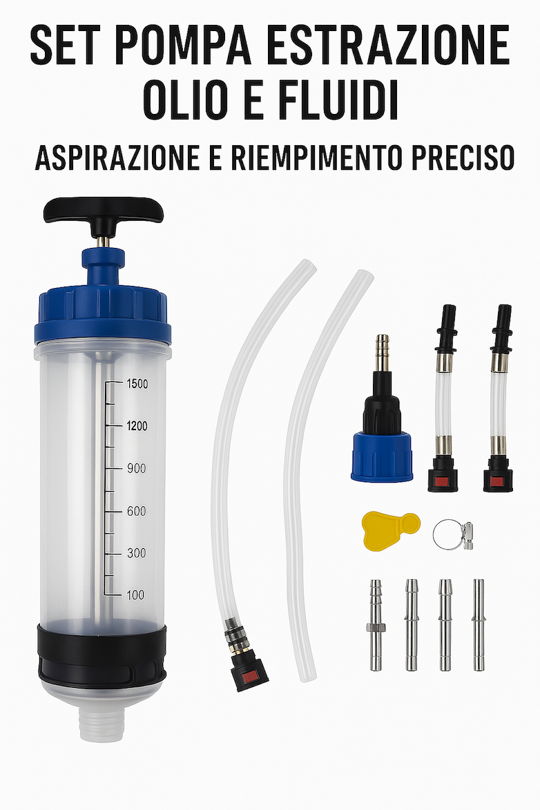 Set pompa estrazione olio e fluidi – aspirazione e riempimento preciso da 1,5 litri