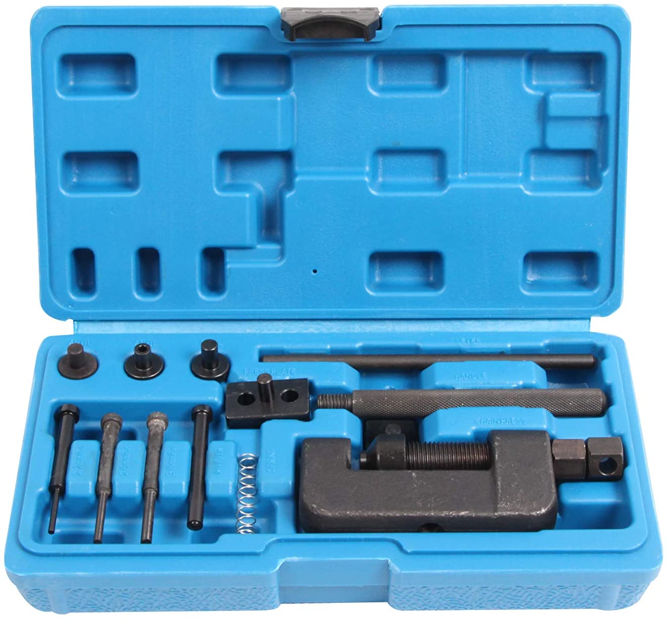 DescrizionePer aprire le catene di motociclette a qualunque numero di rapporti, cinghie di trasmissione edi distribuzione, e per ribadire le catene. Per catene di motociclette a qualunque numero di rapporti, cinghie di trasmissione e di distribuzione.Apri in modo sicuro e veloce le catene.Ribadisci accuratamente le catene nuove.13 pezzi per tutte le catene.Con pratica valigetta.