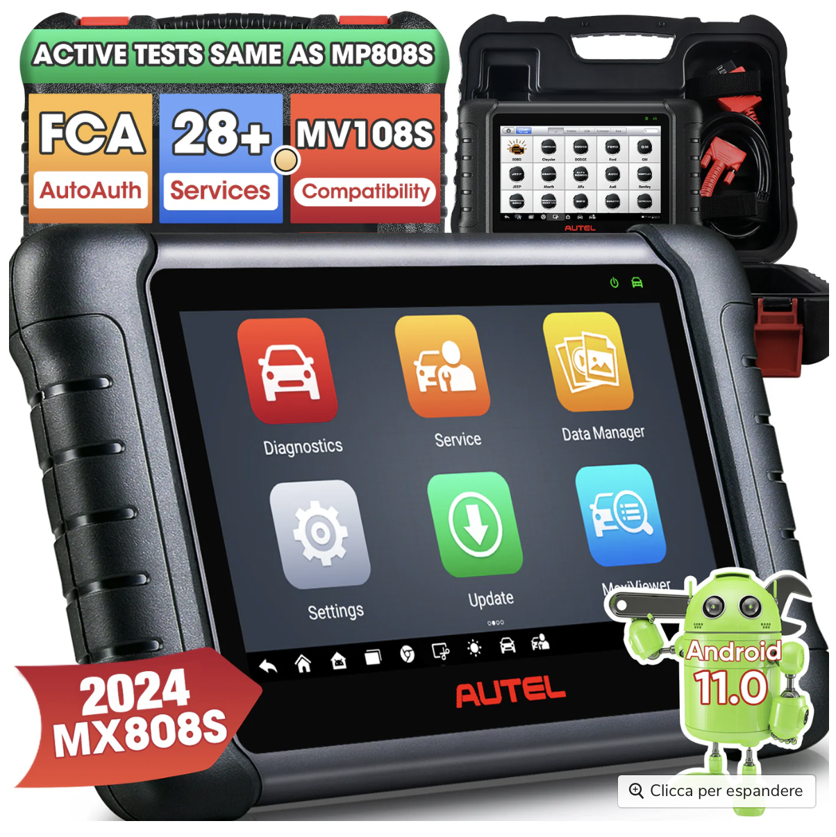 2024 NUOVO-Autel MaxiCheck MX808SSe sei un fai-da-te, vuoi diagnosticare o riparare la tua auto con un budget limitato, MX808S sarà la scelta migliore.Aggiornato da Autel MX808/MK808, Autel MX808S dotato di ✅Android 11,✅Memoria 64G, supporto ✅wifi 5G, funzionerà più velocemente e senza intoppi. Soprattutto, è ✅multilingua, supporta inglese/spagnolo/francese/tedesco/italiano 13+ lingue.Autel Maxicheck MX808S è uno scanner diagnostico OBD2 completo; Integra✅ diagnostica di sistema completa, ✅test attivi, ✅28+ funzioni speciali, ✅10000+ copertura di marchi, registrazione dati, questa tavoletta diagnostica da 7" che è diventata il nuovo strumento di controllo per i professionisti!Autel MX808S può leggere e cancellare rapidamente i DTC per tutti i moduli disponibili della maggior parte delle marche e dei modelli sul mercato. Come scanner diagnostico di base Autel, MaxiCheck MX808S ti offre anche funzioni speciali superiori, tra cui Oil Reset, EPB, SAS, BMS, ABS Brake Bleed e DPF Regeneration.Diagnosi di tutti i sistemi a livello OELo strumento diagnostico MX808S può accedere e diagnosticare tutti i moduli del veicolo disponibili con il cavo. Con funzionalità complete per codici, dati in tempo reale e informazioni sull'ECU, legge e cancella i codici su tutte le ECU e mostra i dati in tempo reale in testo, grafico o analogico.Codici di lettura: questa funzione recupera e visualizza i DTC dal sistema di controllo del veicolo. La schermata Leggi codici varia per ogni veicolo testato. Su alcuni veicoli, i dati del frame di blocco possono anche essere recuperati per la visualizzazione.Cancella codici: dopo aver letto i codici recuperati dal veicolo e aver effettuato alcune riparazioni, puoi decidere di cancellare i codici dal veicolo utilizzando questa funzione. Prima di eseguire questa funzione, assicurarsi che la chiave di accensione del veicolo sia in posizione ON (RUN) con il motore spento.Dati in tempo reale: questa funzione visualizza i dati PID in tempo reale dell'ECU. I dati visualizzati includono ingressi e uscite analogici, ingressi e uscite digitali e informazioni sullo stato del sistema trasmesse sul flusso di dati del veicolo.28+ Funzioni Speciali di ResetLa sezione Assistenza è appositamente progettata per fornire un rapido accesso ai sistemi del veicolo per varie prestazioni di assistenza e manutenzione programmate.Seguendo le istruzioni sullo schermo per selezionare le opzioni di esecuzione appropriate, inserire valori o dati corretti ed eseguire le azioni necessarie, il sistema ti guiderà attraverso le prestazioni complete per varie operazioni di servizio.Oil Reset - Questa funzione consente di eseguire il ripristino per il sistema Engine Oil Life, che calcola un intervallo ottimale di cambio della vita dell'olio a seconda delle condizioni di guida del veicolo e del clima. Il promemoria della durata dell'olio deve essere ripristinato ogni volta che l'olio viene cambiato, in modo che il sistema possa calcolare quando è necessario il prossimo cambio dell'olio.EPB - Questa funzione ha una moltitudine di usi per mantenere il sistema frenante elettronico in modo sicuro ed efficace. Le applicazioni includono la disattivazione e l'attivazione del sistema di controllo dei freni, l'assistenza con il controllo del liquido dei freni, l'apertura e la chiusura delle pastiglie dei freni e la impostazione dei freni dopo la sostituzione del disco o della pastiglia, ecc.SAS - Il SAS (Steering Angle Sensor Calibration) memorizza in modo permanente la posizione corrente del volante come posizione dritta in avanti nella EEPROM del sensore dell'angolo di sterzata.DPF - La funzione Diesel Particle Filter (DPF) gestisce la rigenerazione DPF, la sostituzione dei componenti DPF teach-in e DPF teach-in dopo la sostituzione dell'unità di controllo del motore. L'ECM monitora lo stile di guida e seleziona un momento adatto per impiegare la rigenerazione.Sanguinamento del freno - Sanguinamento del freno ABSCalibrazione del sedile: calibra la memoria nei sedili sostituiti o riparatiRipristino airbag: ripristina i dati dell'airbag per cancellare l'indicatore di guasto della collisione dell'airbagA/F Reset: imposta o impara i parametri del rapporto aria/carburanteRipristino del cambio: aiuta a completare l'autoapprendimento del cambio per migliorare la qualità del cambioRipristino della sospensione: regolare il sensore di altezza della carrozzeria del veicolo per la calibrazione del livelloBMS - Registrazione e ripristino della batteriaPiù come: sedili, contachilometri, iniettore, dimensioni del pneumatico CHG, TEC Learn, sospensioni, acceleratore, WIN OR ROOF, cambio di lingua, faro ......Nota: le funzioni di ripristino possono variare a causa dei diversi modelli di veicoli, se desideri funzioni di ripristino specifiche per la tua auto, inviaci le informazioni sul tuo veicolo (modello/anno/numero VIN) per ricontrollare.Controllo bidirezionale avanzato3000+Active Test/Bi-Directional Control: la funzione Active Test viene utilizzata per accedere ai sottosistemi specifici del veicolo e ai test dei componenti. Durante un test attivo, il tablet invia comandi all'ECU per guidare gli attuatori. Questo test determina l'integrità del sistema o delle parti leggendo i dati della ECU del motore o monitorando il funzionamento degli attuatori, come la commutazione di un solenoide, un relè o un interruttore, tra due stati operativi.Ispezione digitale con MV108S: quando si lavora con Autel MV108S, MX808S può esaminare aree difficili da raggiungere normalmente nascoste alla vista, registrare immagini e video digitali, in modo sicuro e veloce. Puoi scegliere il set: Maxicheck+MV108S.Perché scegliere Autel MaxiCheck MX808S?Nessun blocco - Puoi usare MX808S in tutto il mondoDiagnosi a livello OE- MX808S può accedere a tutti i moduli ECU disponibili. Ed esegue la diagnosi a livello OE28+ funzioni di servizio- MaxiCheck MX808S ha 28+ opzioni di funzioni di servizio, tra cui principalmente Oil Reset,