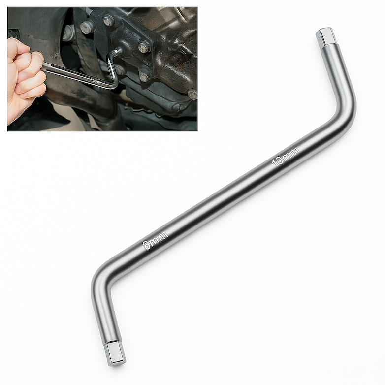Chiave professionale per la rimozione e sostituzione dei tappi olioStrumento indispensabile per officine meccaniche e appassionati di fai-da-te, progettato per garantire massima precisione e facilità d'uso.Caratteristiche principali🔧 Design quadrato compatibile con tappi olio da 8 mm e 10 mm 📏 Lunghezza ottimale di 250 mm per una presa sicura e maneggevolezza 🛠 Materiale robusto per una durata elevata e resistenza all'usura 🚗 Ideale per veicoli di varie marchePerfetta per professionisti e appassionati!Affidabile, durevole e facile da usare, questa chiave è lo strumento ideale per la manutenzione della coppa olio motore, garantendo un lavoro preciso e senza sforzo.