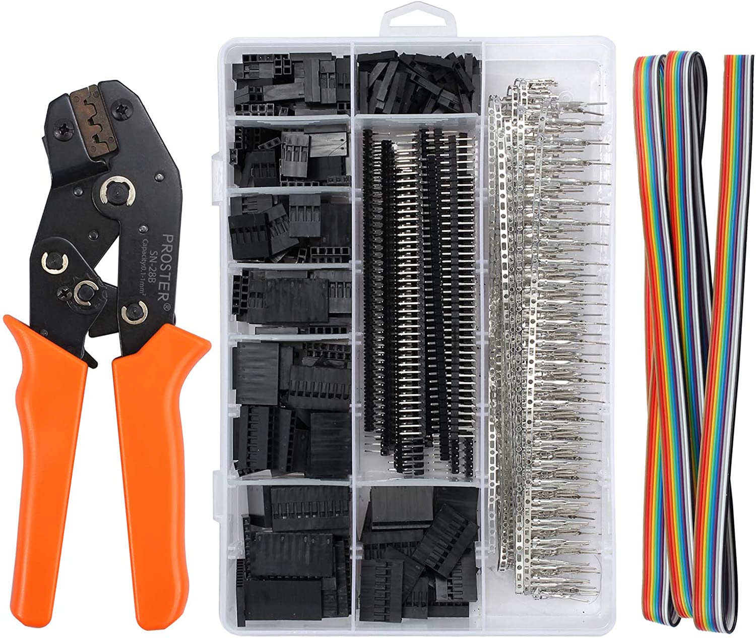 Dupont crimpatura sn-28b crimpatrice con 1550pz pin connettori e cavo idc 1.5m pinza piegatrice 28-18awg 0.1-1.0mm2 per connettori 2.54mm 3.96mm kf2510 attrezzatura di 3d stampa rpi