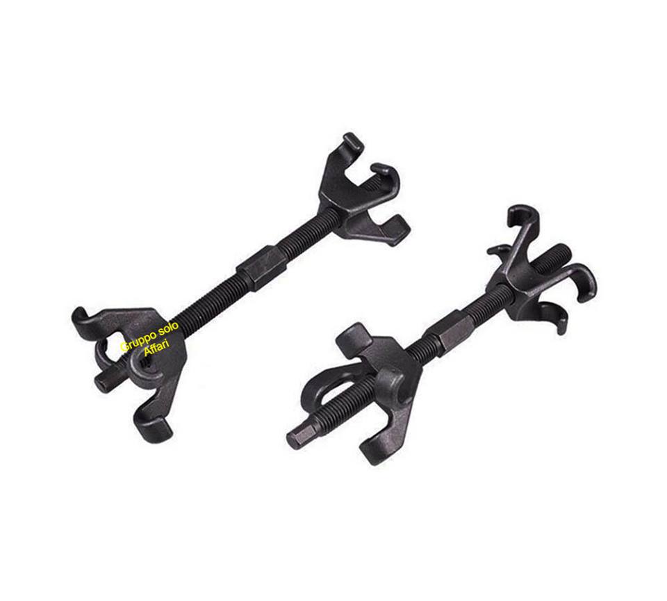 KIT ESTRATTORI COMPRIMI MOLLE APERTURA REGOLABILE FINO A 390 MMSmonta molle doppio con 4 ganci 2 grandi e 2 piccoli per le diverse misure di molle.Utilissimo attrezzo per comprimere ed estrarre molle e ammortizzatori.Consente di eseguire da soli la sostituzione delle molle/ammortizzatori senza alcun bisogno di un'officina specializzata, risparmiando così tempo e denaro.Lunghezza: 390 mmSi utilizza con una chiave dinamometrica o con un semplice cricchetto.La confezione in cartone è composta da due stringi molle come da foto.