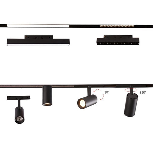 Faretto led 15 o 20w magnetico per binario ad incasso nero direzionabile
