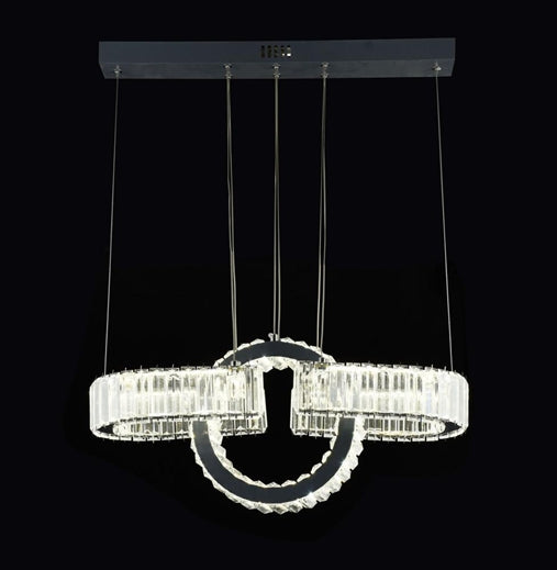 Lampadario in cristallo 9015Modello:9015 Potenza45WTensione di funzionamento220-240v ACFrequenza50-60 HzTecnologiaLED SMDLumen3375lm Materiali cristalli in vetro e piastra in acciaio inossidabileCaratteristiche LedNon dimmerabileTemperatura luceTonalità di luce intercambiabile tra luce Fredda 6400K, Naturale 4200K e Calda 3000K MISURE:550mm x H1000mmContenuto della confezione:1 lampadario1 telecomando 1 staffa per montaggio