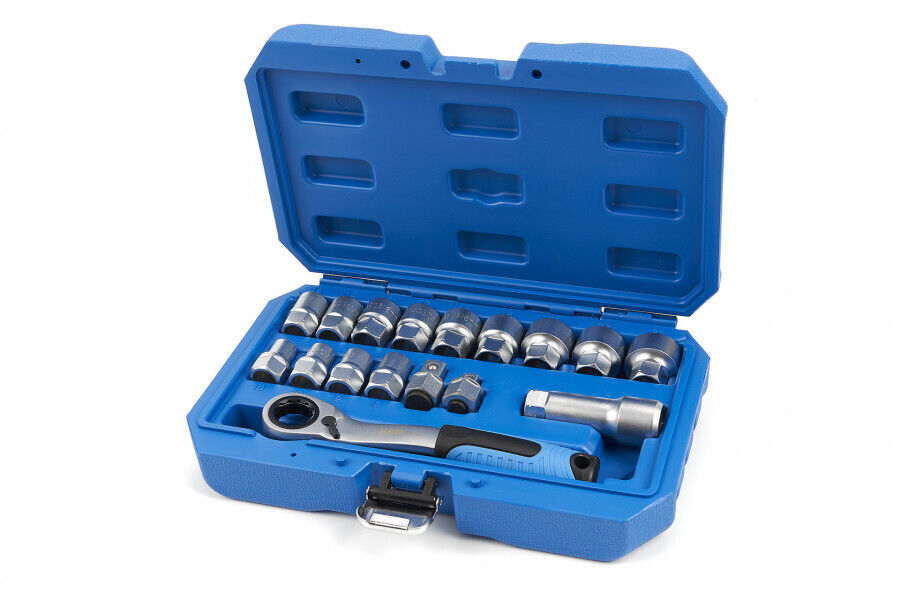 Set 17pz chiavi a bussola passanti 10-24mm 3/8" 1/2" con cricchetto reversibile