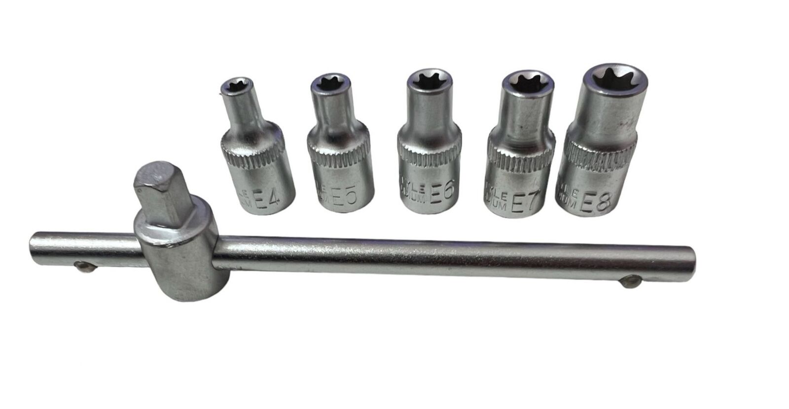 Set 6 bussole torx 1/4 cromo vanadio attacco e4, e5, e6, e7, e8 6 pz