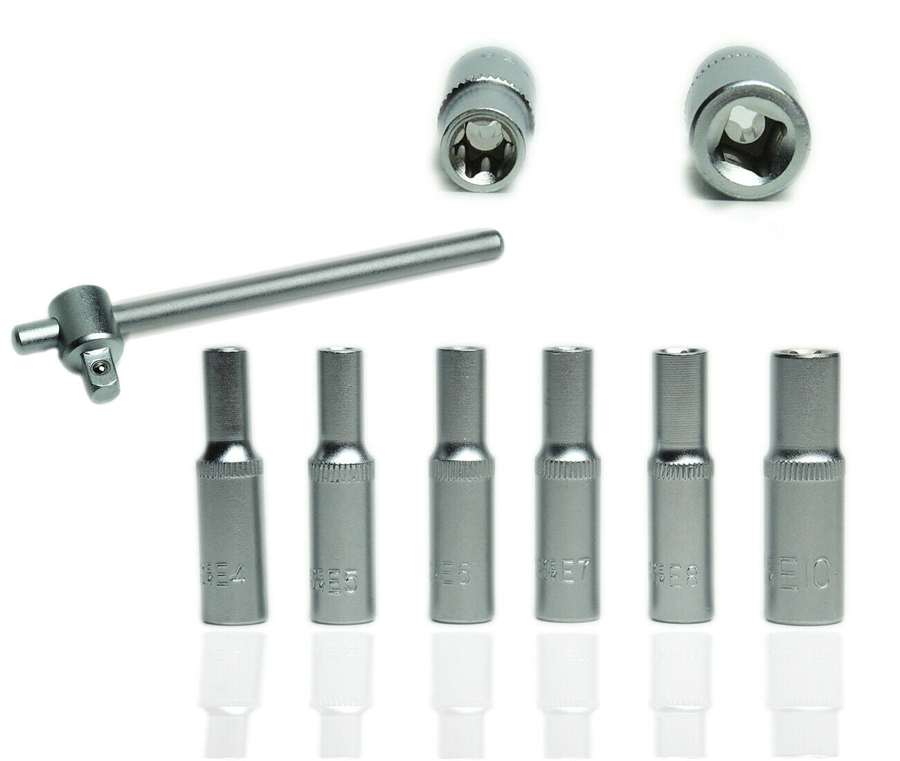 Set 7 pz 6 chiavi a bussola torx 1/4" scalanati striscia clip millerighe chivaino