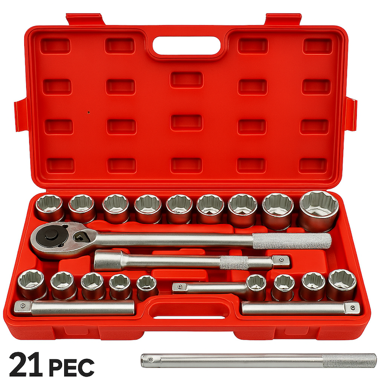 Set chiavi a bussola 3/4" | 21 pezzi 19–50 mm | per camion, trattori e veicoli industriali | acciaio chrome vanadium