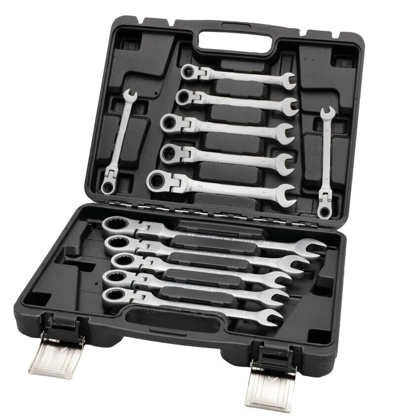 Set chiavi combinate a cricchetto con snodo snodabili set da 12pz