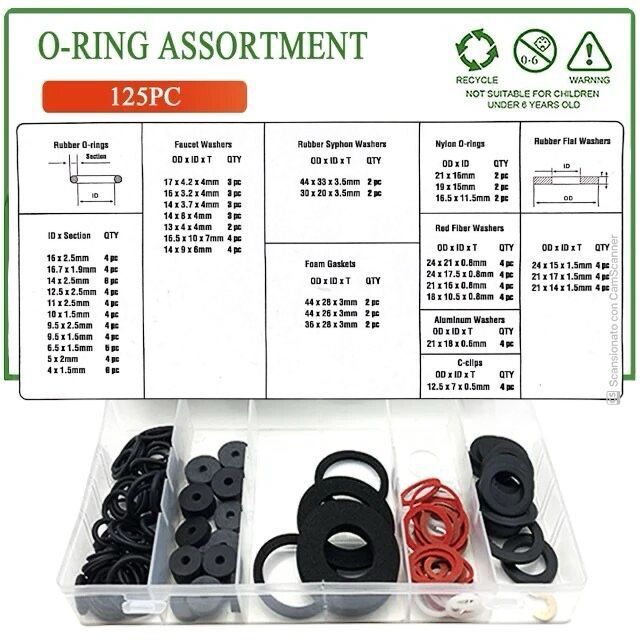 Set di 125 rondelle piatte rondelle in gomma per idraulici rubinetti
