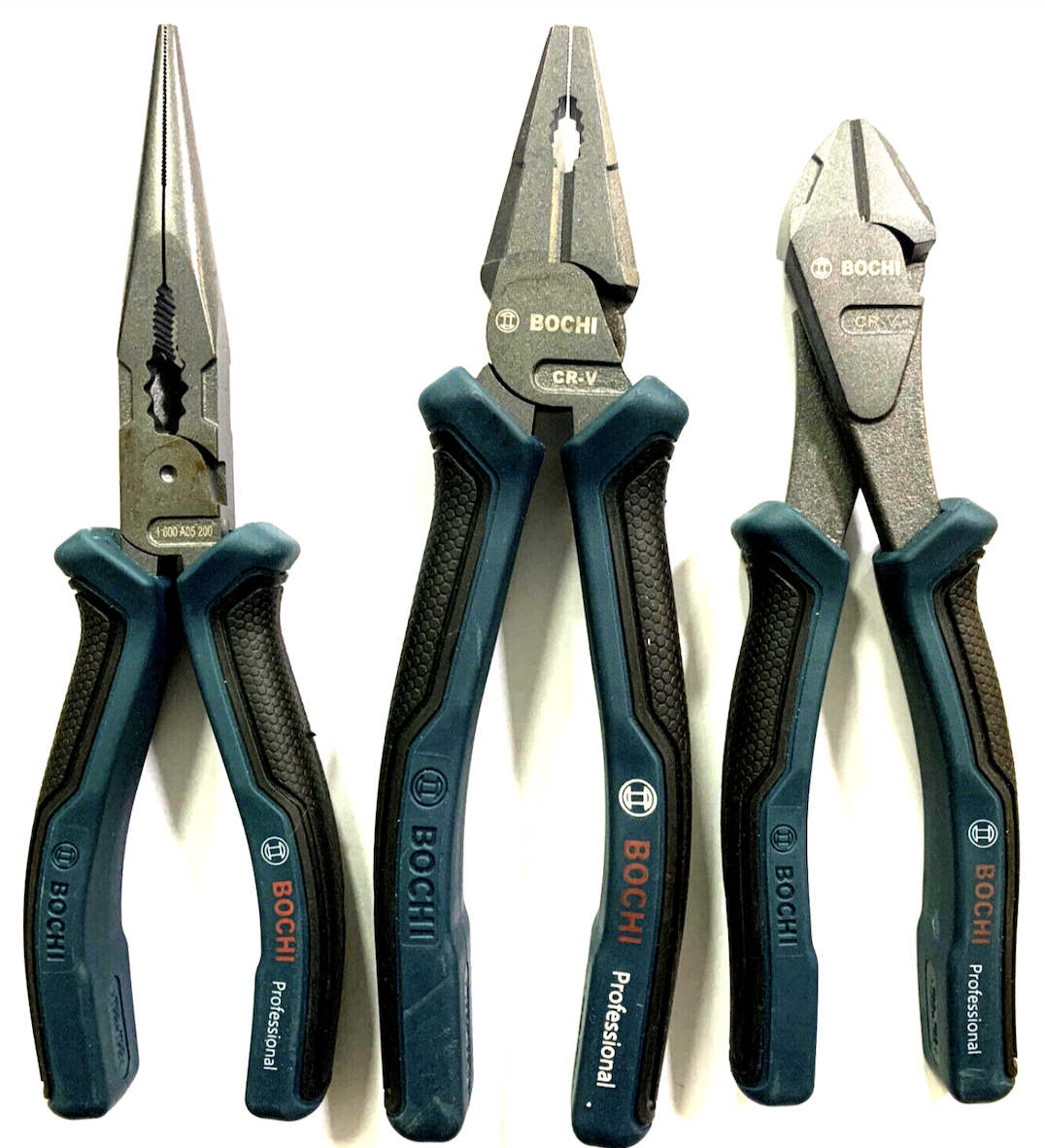 tris pinze con manico antiscivolo ergonomico professionali in acciaio chrome vanadiumil set include1 Pinza lunga becco dritto lunga 18 cm 1 Pinza tradizionale da 20 cm1 Tronchesina da 20 cm